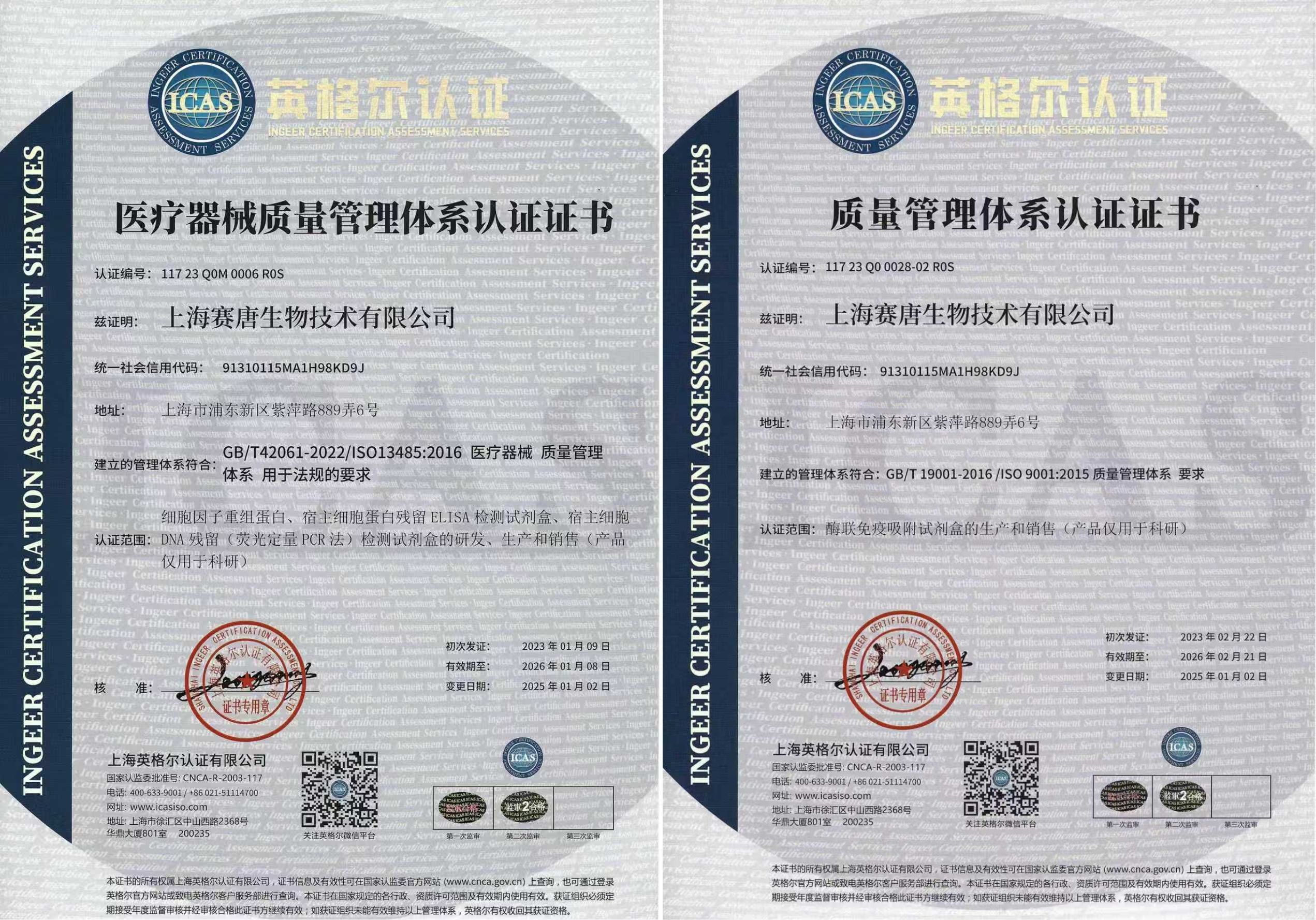近日,上海赛唐生物技术有限公司再传捷报。在中国食品药品检定研究院(简称“中国药检”)组织实施的 “疫苗中Vero细胞蛋白质残留量检测” 实验室能力验证项目(编号:NIFDC-PT-526)中,赛唐生物提交的检测结果被正式评价为 “满意” ,并获得由中国药检颁发的权威证书。