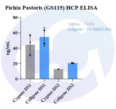 无论汉逊酵母、酿酒酵母,甚至是毕赤酵母,抑或是同是毕赤酵母来源的X-33和GS115品系,即便都有很近的亲缘关系,但是各自的表达谱也是存在显著的差异。GS115与X-33的遗传背景、筛选标记、营养类型、抗性和应用场景存在明显不同之处。同时,在不同药物的多样性的纯化工艺中的HCP残留,更不能同日而语。在往期的酵母之间,我们已经实验论证过其之间的交叉反应、空白本底、定量限、抗干扰等性能,详见: