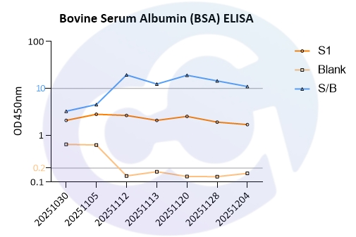 BSA在医疗诊断传感器和酶反应等应用非常广泛。且BSA是作为蛋白定量(如BCA、Bradford)试剂,同时,由于该蛋白的准确、快速、灵敏和可重复性,所以BSA也是免疫化学检测的标准品溯源最常用的工具试剂。现在常用的BSA检测方法含有电化学阻抗谱,近红外反射光谱,毛细管电泳和光散射等技术。